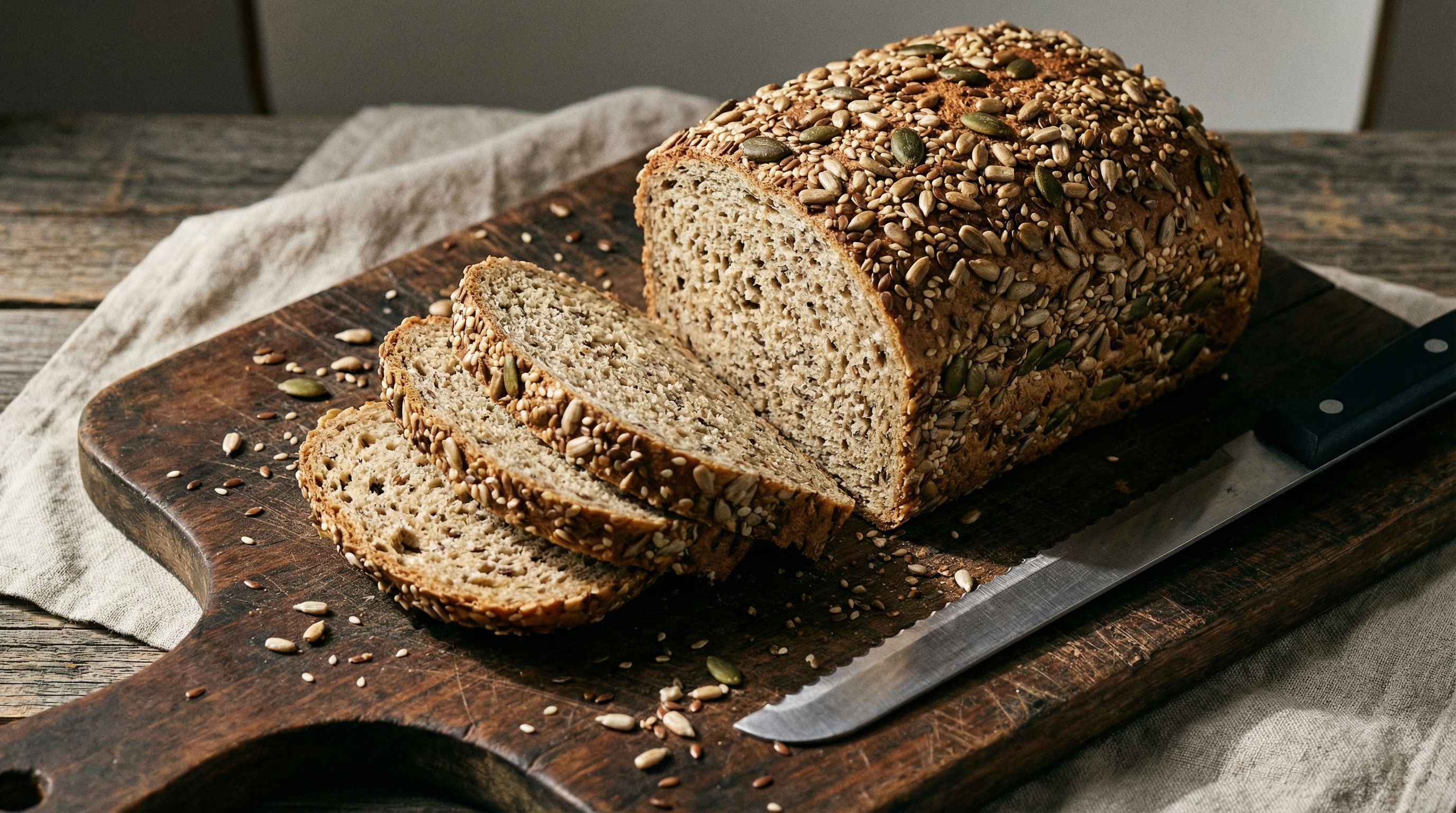 Nutrient-dense bread loaded with seeds and multiple gluten-free grains for maximum nutrition.